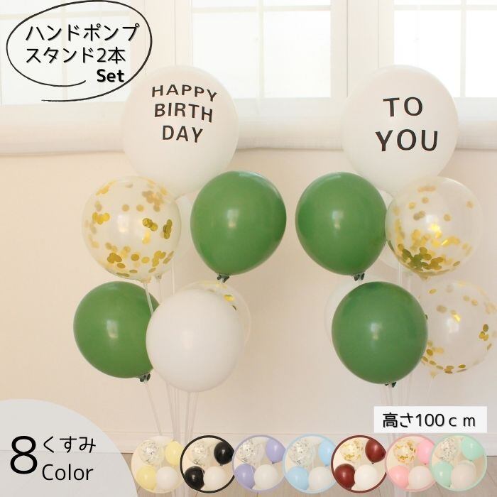 APM くすみカラースタンド セット 風船 バルーン すぐに飾れる!! 17点セット バルーン14個 スタンド2本 ハンドポンプ1本 トレンドカラー ハンドポンプ 風船 卓上スタンド エアポンプ パーティー 受付 誕生日 記念日 イベント