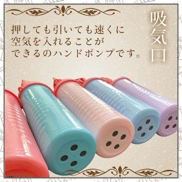 さらに、このハンドポンプは通常の風船用ハンドポンプよりも2倍速で風船を膨らませることができます。