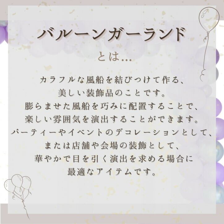 この素敵なパープルのバルーンセットを使って、特別な日をより一層素敵なものにしましょう。