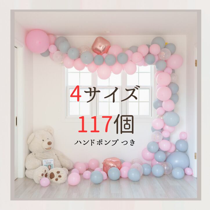 APM マカロンピンク&マカロングレー バルーンガーランド ハンドポンプ付き 【バルーン117個+装飾用品2個】 豪華なバルーンセット 記念日 誕生日 大人かわいい 卒業 ベビーシャワー 結婚式 デコレーション アニバーサリー くすみカラー バルーングルー