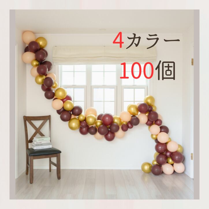 この風船セットは、シックな色合いで温かみのあるカラーで統一された4色の風船が入ったセットです。コーヒーブラウン、ブラウン、ベージュ、ゴールドの4色が組み合わさり、上品で落ち着いた雰囲気を醸し出します。