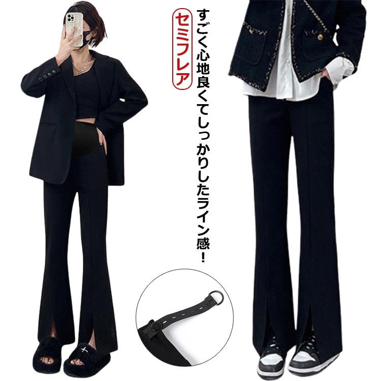 マタニティ パンツ 春秋 春服 秋服 オフィス 妊婦服 マタニティウェア ルームウエア 部屋着 フレアパンツ ワイドパンツ