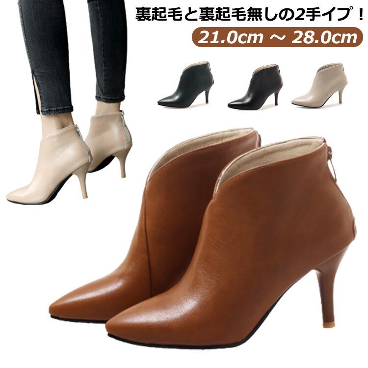 ブーツ Vカット 切り替え ショート ブーツ ピンヒール ヒール 7センチ ブーティー 裏起毛 小さいサイズ 大きいサイズ 美脚 ハイヒール おしゃれ きれいめ 靴