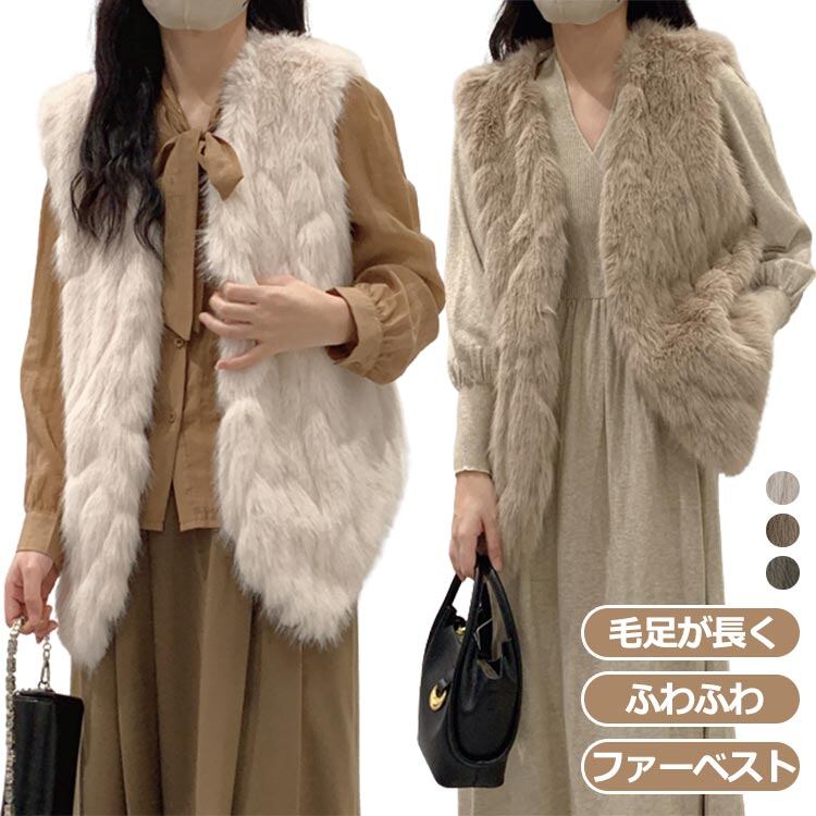 毛足が長く ふわふわ もこもこ フェイトップス ベスト 豊富な品揃えカラー: グレー キャメル ベージュ