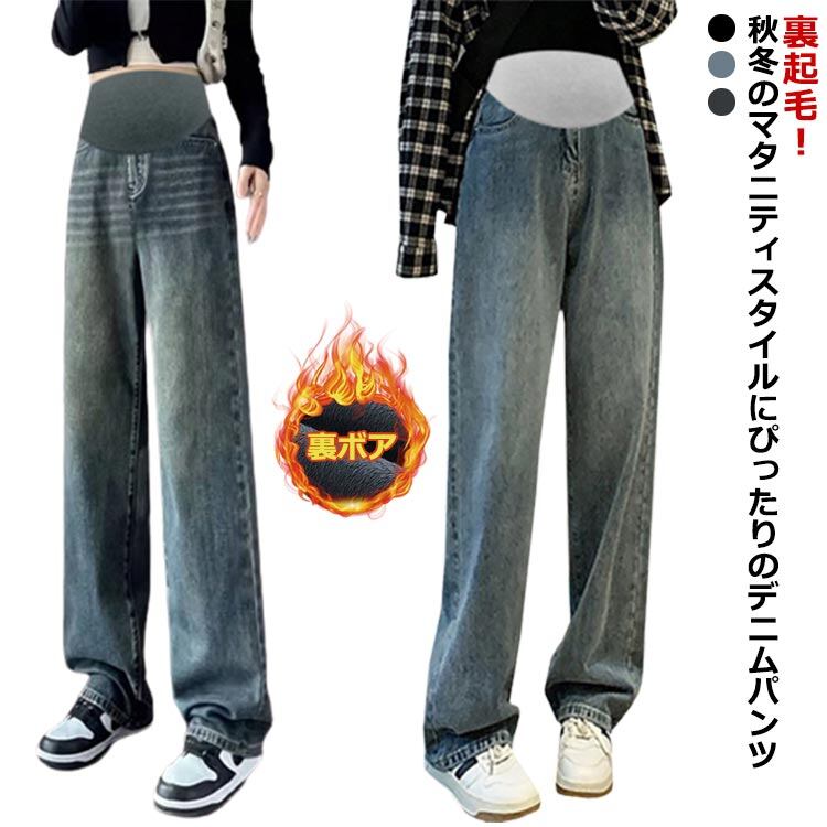 マタニティ対応 ワイドパンツ デニム マタニティデニムパンツ マタニティ パンツ 秋冬 冬 裏 起毛 裏起毛 あったか 妊娠 腹包み 妊婦服 妊婦パンツ