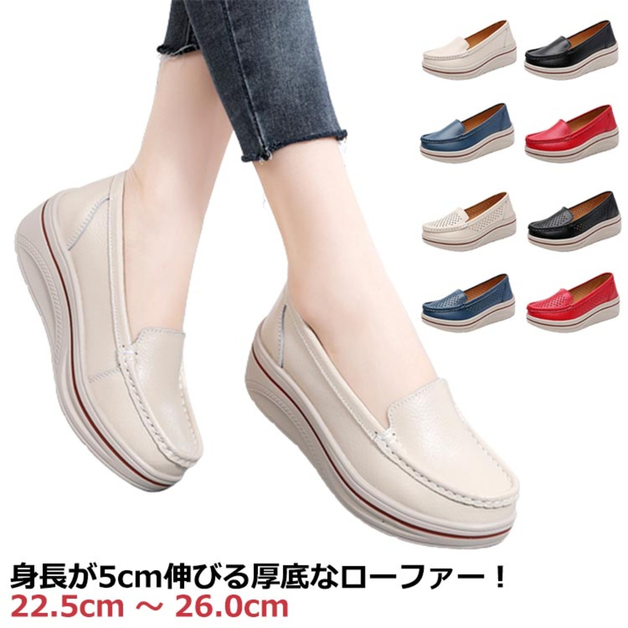 厚底 ローファー スリッポン パンプス レディース 厚底シューズ カジュアルシューズ 革 大きいサイズ