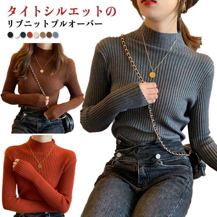 プチハイネックリブニット カジュアル フェミニン オフィスカジュアル レイヤード 重ね着 高見え OL ストレッチ 通勤
