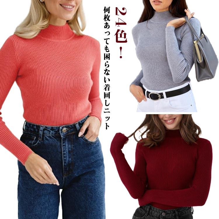 リブニット プチハイネック リブニット ハイネック 長袖 ニット リブレディースファッション トップス ニット セーター セーター