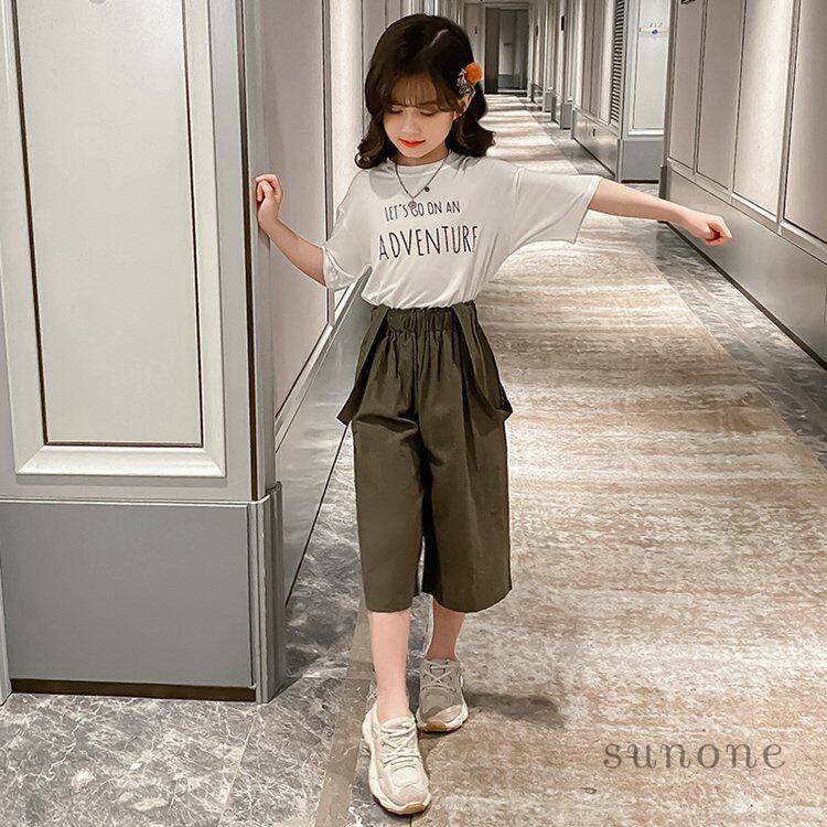 セットアップ 女の子 半袖 韓国子供服キッズ ベビー マタニティ 40%Offサイズ: ホワイト カーキ カラー: 110cm 120cm 130cm 140cm 150cm 160cm