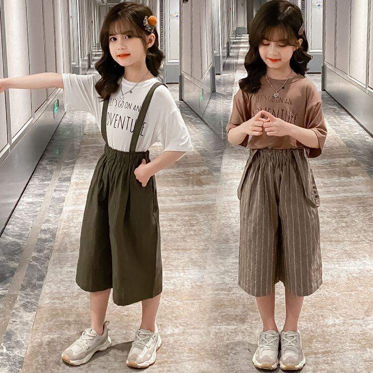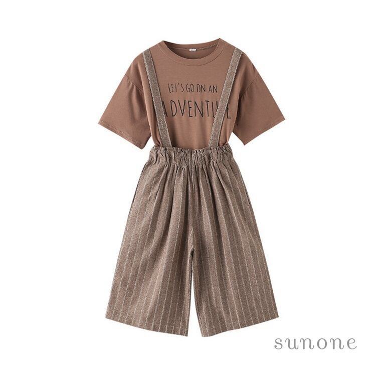 セットアップ 女の子 半袖 韓国子供服 女の子 サロペット上下セット Tシャツ オーバーオール 七分丈 夏服 カジュアル キッズ ジュニア服 女の子 レジャー おしゃれ 旅
