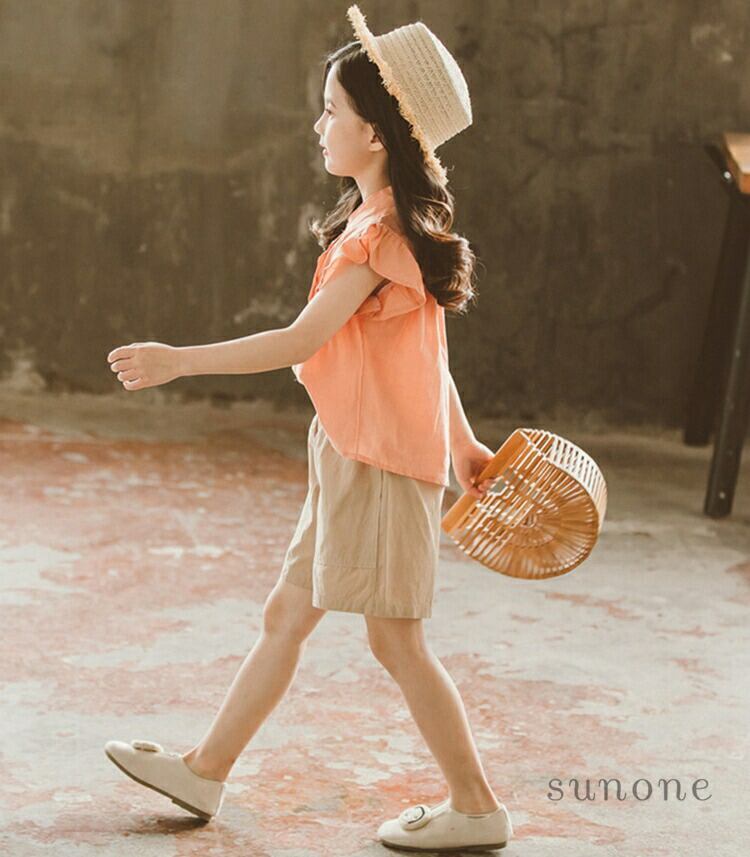 セットアップ キッズ 女の子 上下セット夏 韓国子供服 2点セット シャツ 半ズボン カジュアル ナチュラル 可愛い キャミソール ノースリーブ 女の子 キッズ ゆったり リ