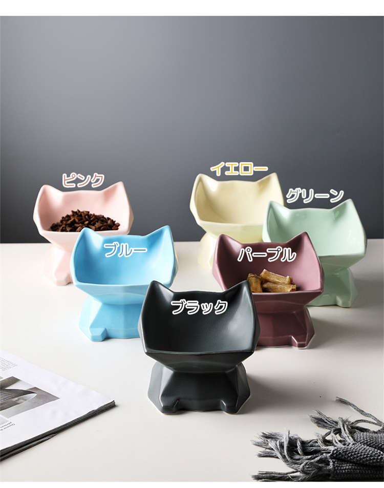 猫 フードボウル 陶器 ペット 食器 カラー: ピンク ブルー ブラック パープル グリーン イエロー