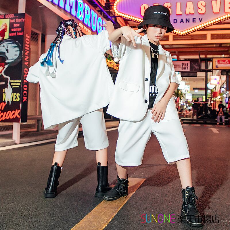 ヒップホップ ダンス衣装 ガールズ ジャズ キッズ ダンス セットアップ キッズダンス衣装 黒 白 スーツ ジャケット パンツ 白 黒 演出服 舞台服 練習着
