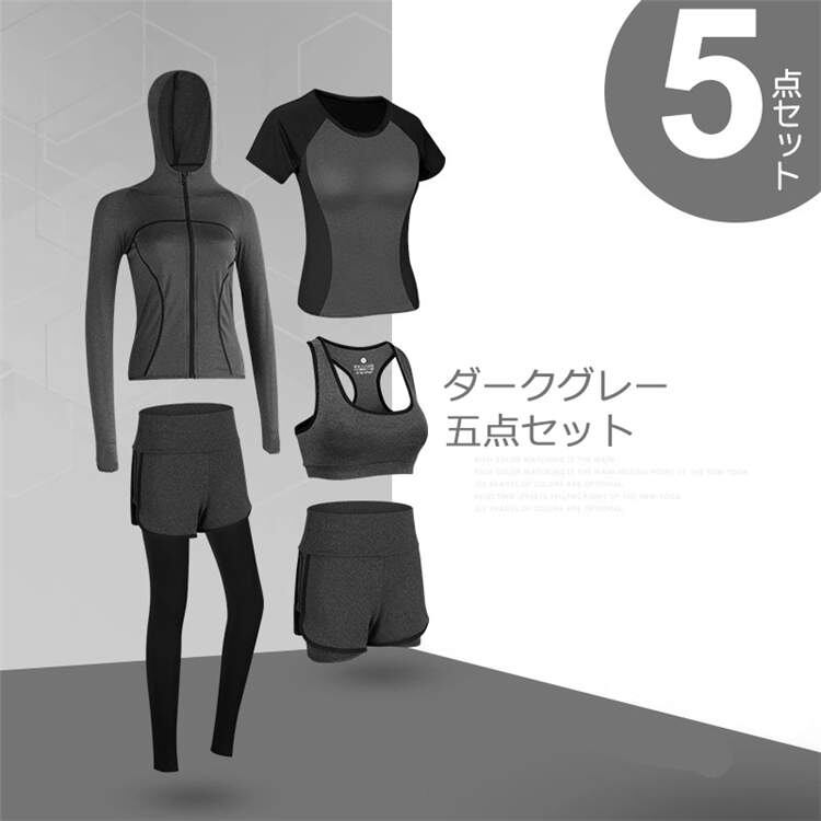 スポーツウェア レディース 5点セットサイズ: S M L LL/XL 2XL カラー: ブラック サーモンピンク ピンク グレー