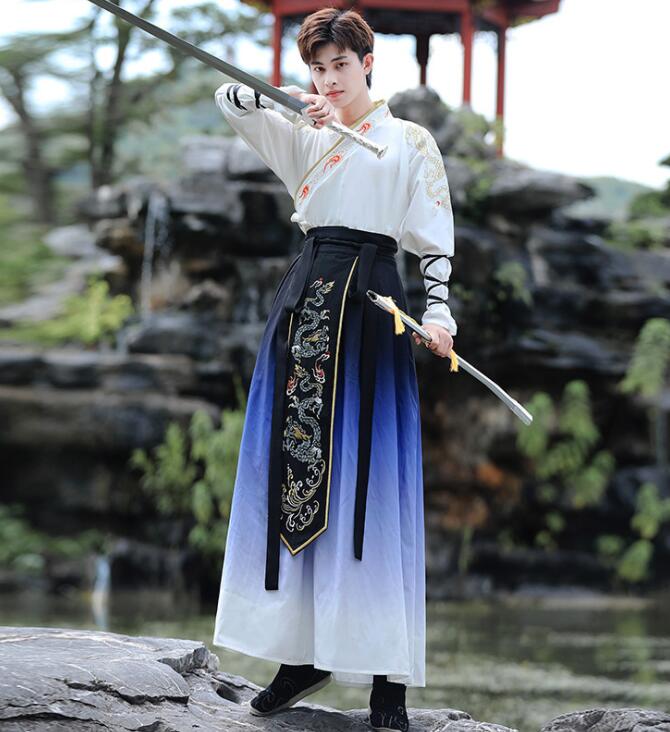ハロウィーン イベント 学園祭 中華服 グラデーション チャイナ服 メンズ 漢服 カンフー衣装 大人 華流コスチューム 仮装 変装 交差 おしゃれ チャイナドレス 中華コスプレ衣装