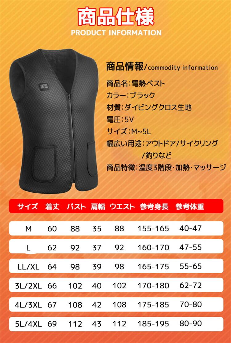 電熱ベスト 3段温度調整 ヒーターベスメンズファッション 特集horizontal: M L XL 2XL 3XL 4XL