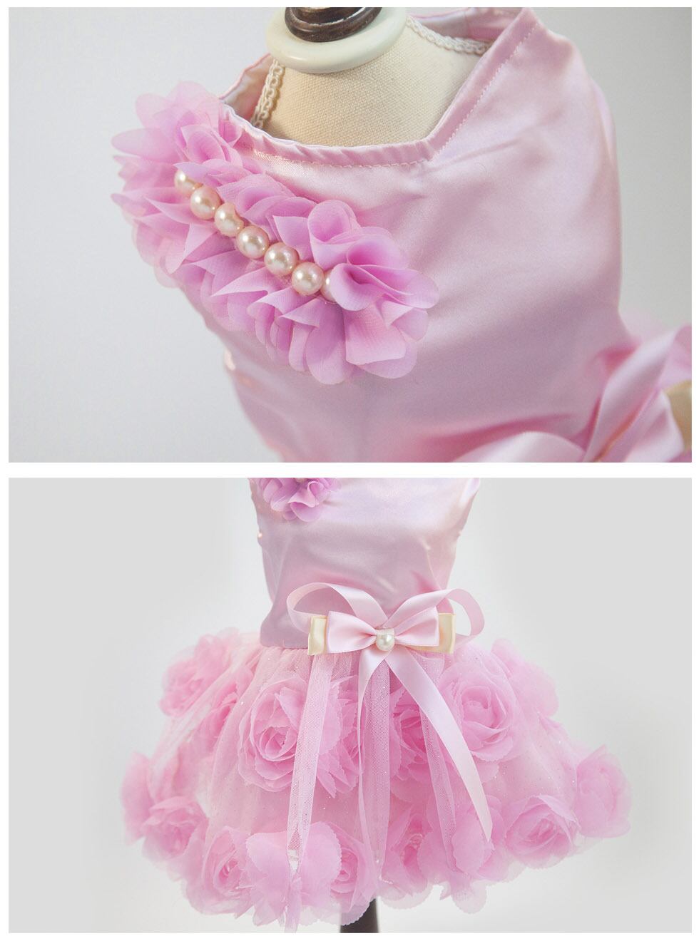 ペットウェア 犬用ウェア ワンピース ドッグウェア ピンク レース チュール 花 可愛い おしゃれ 犬服 猫服 お散歩 記念写真 イギフト ワンちゃん ネコちゃん イヌ ネコ ドッグ