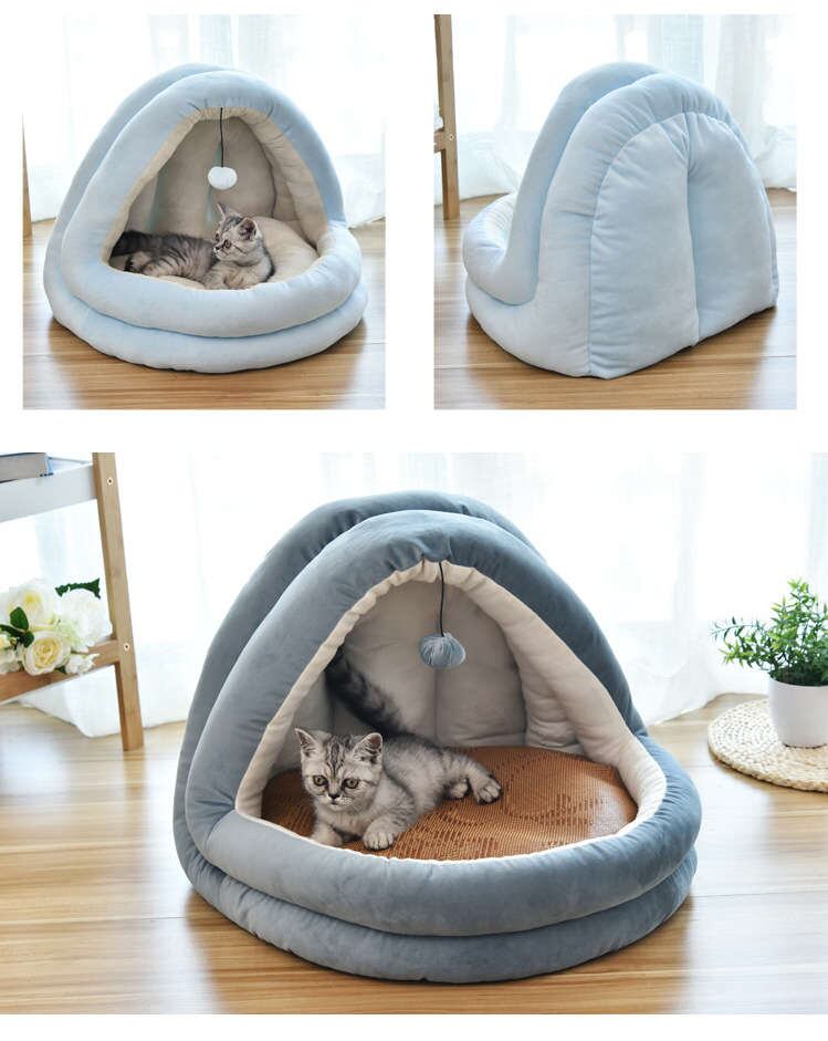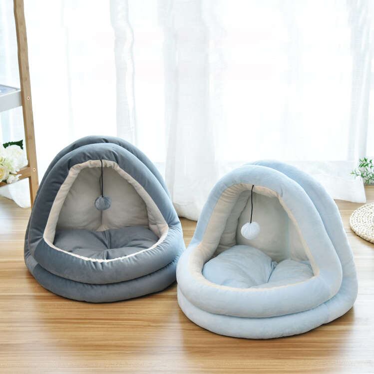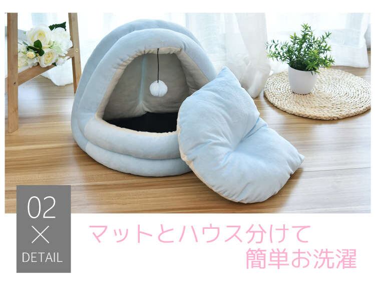 猫ハウス ペットベッド 秋冬用 キャッペット ペットグッズ 人気サイズ: M(幅38cm×奥行33cm×高さ33cm) L(幅44cm×奥行38cm×高さ38cm) XL(幅55cm×奥行44cm×高さ44cm) カラー: インディゴ ブルー