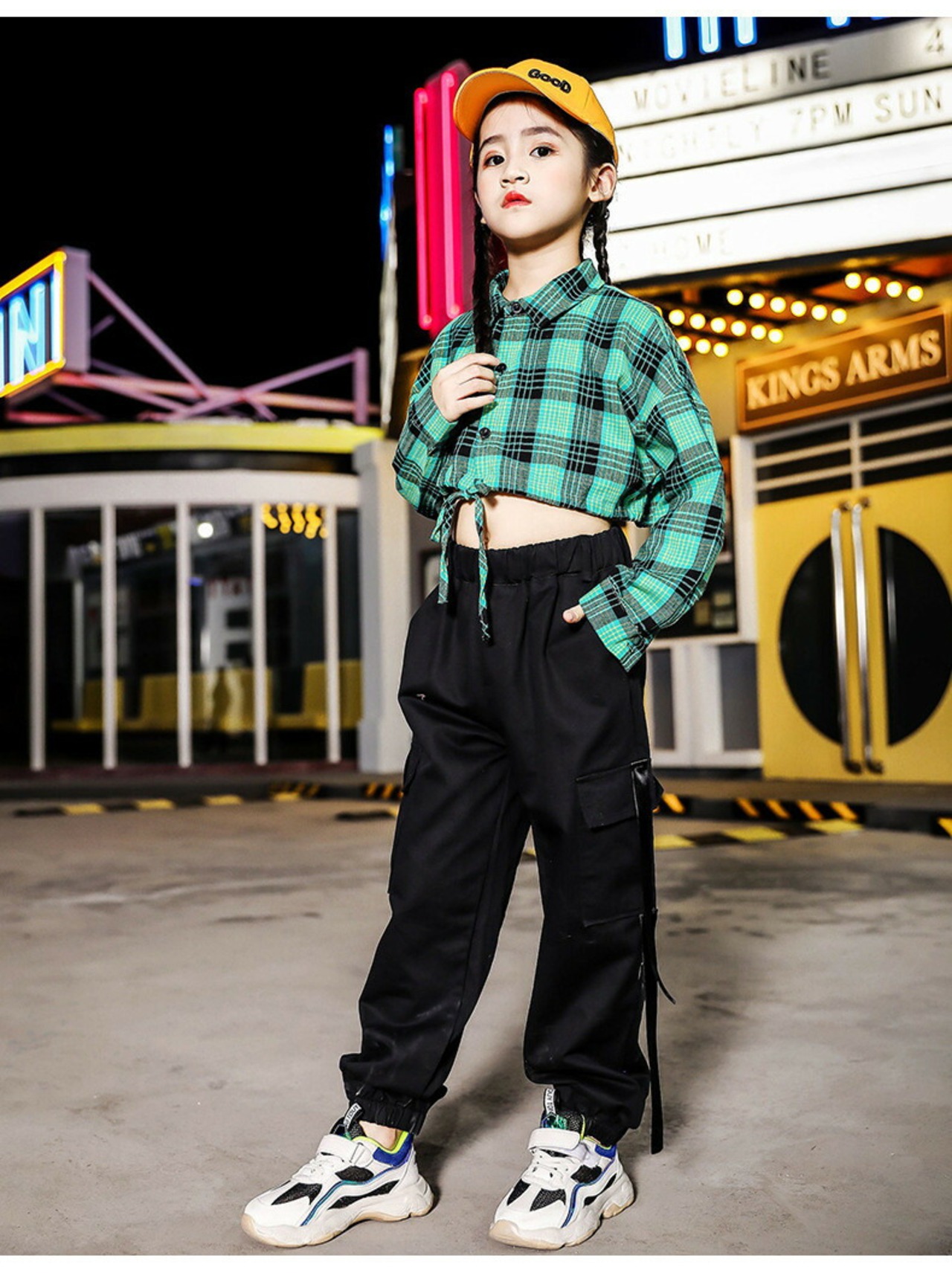 ヒップホップ ダンス衣装 格好良い 子供 ファッション ダンストップス 2点セット ブラック 長ズボン キッズ ジュニア 演出服 普段着 韓国風