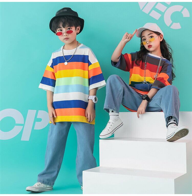 チアガール衣装 女の子 男の子 セットアップ 子供服 ダンス衣装 Tシャツ+長ズボン 2点セット キッズ チアダンス ユニフォーム ダンスウェア 文化祭 学園祭 舞台 団体服 応援団