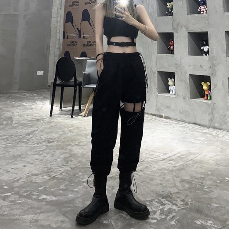 カーゴパンツ レディース ヒップホップ 衣装 ダメージ ストリート HIPHOP K-POP ダンス衣装 ダンスパンツ ウエストゴム ジョガーパンツ イージーパンツ ダンス発表会 舞台衣装 原宿系