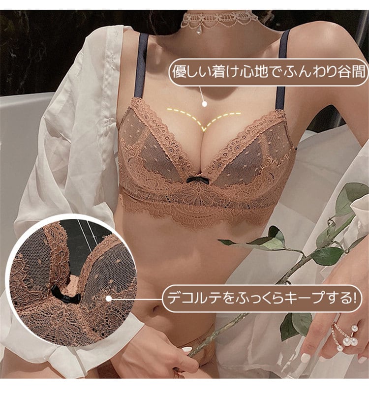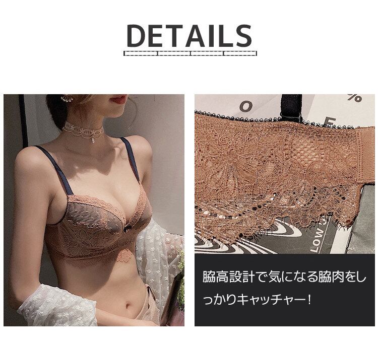 ブラ&ショーツ ノンワイヤー レース ブラジャー ショーツ 谷間 レディース セクシー 美胸 美背 バストアップ 脇高 盛れる 育乳 補正 ブラショーツ ランジェリー インナー