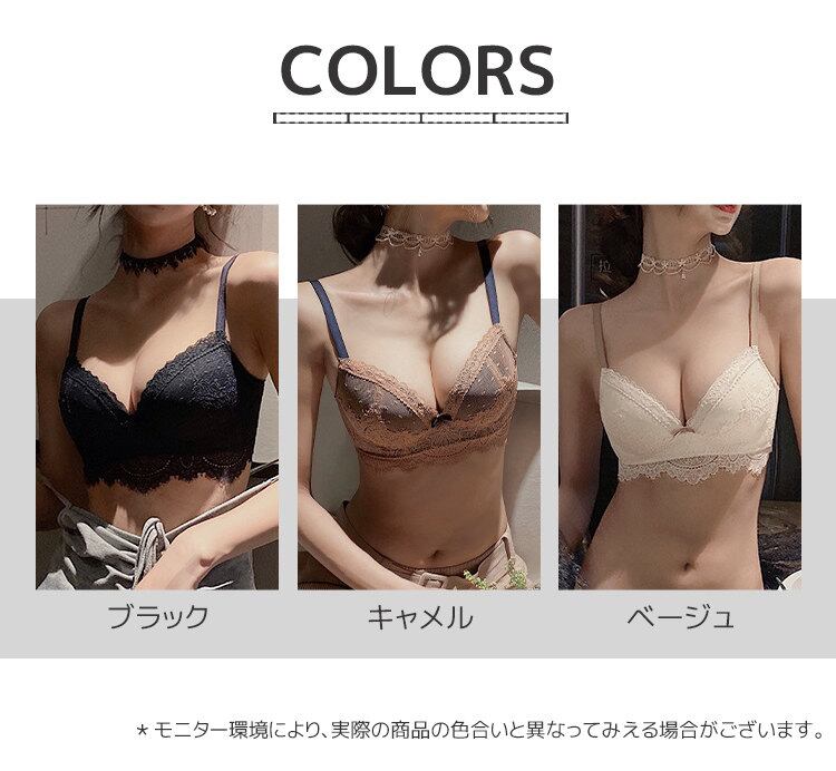 ブラ&ショーツ ノンワイヤー レース インナー 下着 ナイトウエア 豊富サイズ: AB32/70 AB34/75 AB36/80 AB38/85 カラー: ブラック キャメル ベージュ