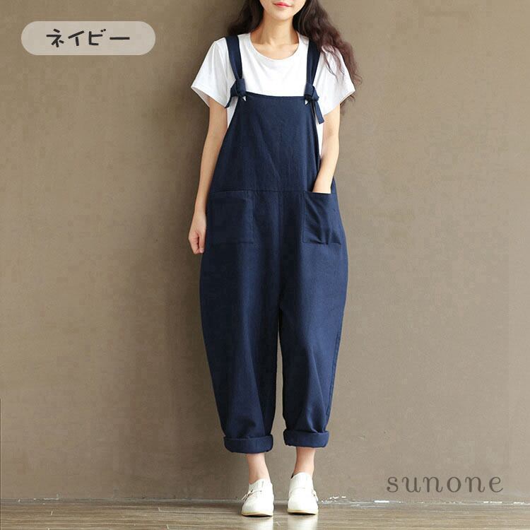 サロペット レディース オールインワン カジュアル パンツ 大人 ズボン ロングパンツ ゆったり 体型カバー ボトムス カジュアル 着痩せ ファッション キャミソール ロング