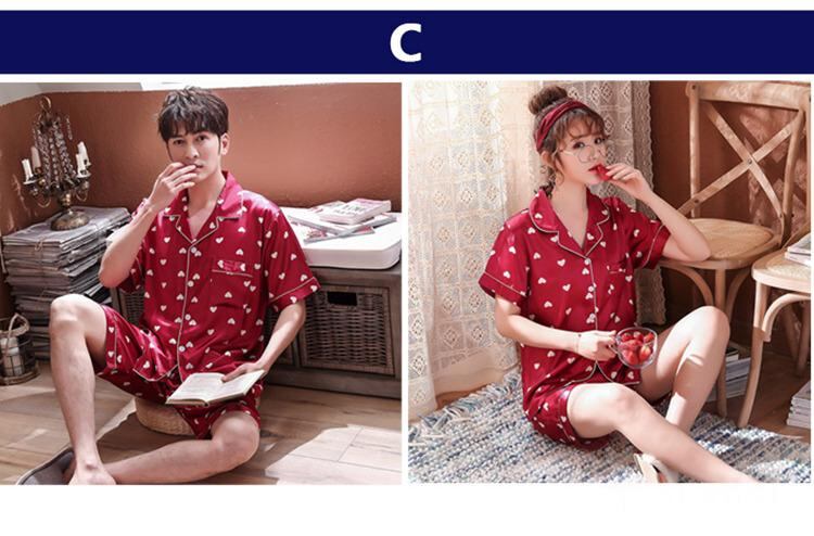 パジャマ メンズ レディース 半袖 ショットパンツ 上下セット 前開き サテン 襟付き ルームウェア ペア パジャマ ペアルック シャツパジャマ 部屋着 人工シルク ギフトセット