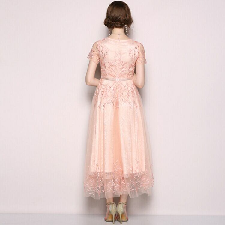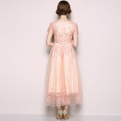 ワンピースドレス レディース パーティードレス フォーマル ロング丈 総レース 刺繍 半袖 ワンピース ファッション エレガント パーティードレス 結婚式 二次会 Aライン 体型カバー