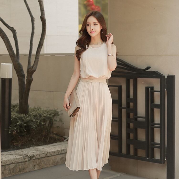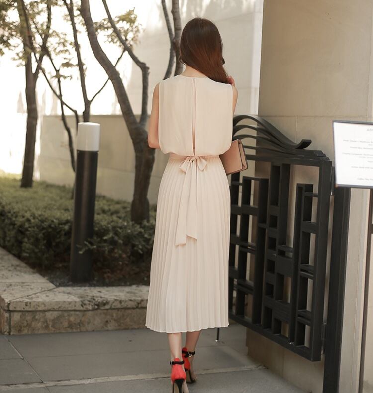 ワンピース レディース マキシワンピース プリーツワンピース シフォンワンピース ノースリーブ バックリボン 無地 エレガント 大きいサイズ 大人 着痩せ オシャレ パーティーワンピース