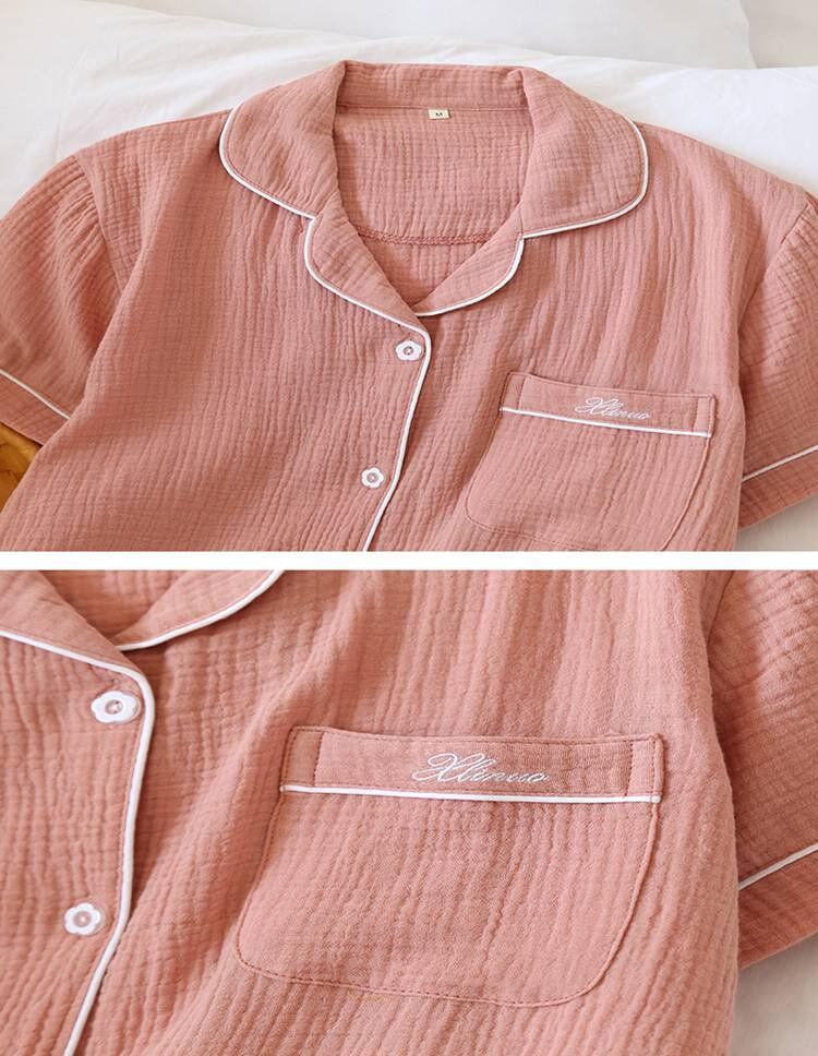 ペアルック パジャマ メンズ レディース カップル お揃い ルームウェア 上下セット 夏 半袖 パンツ 綿100% 前開き 可愛い オシャレ 快適 部屋着 寝巻き 男女兼用 ナイトウエア