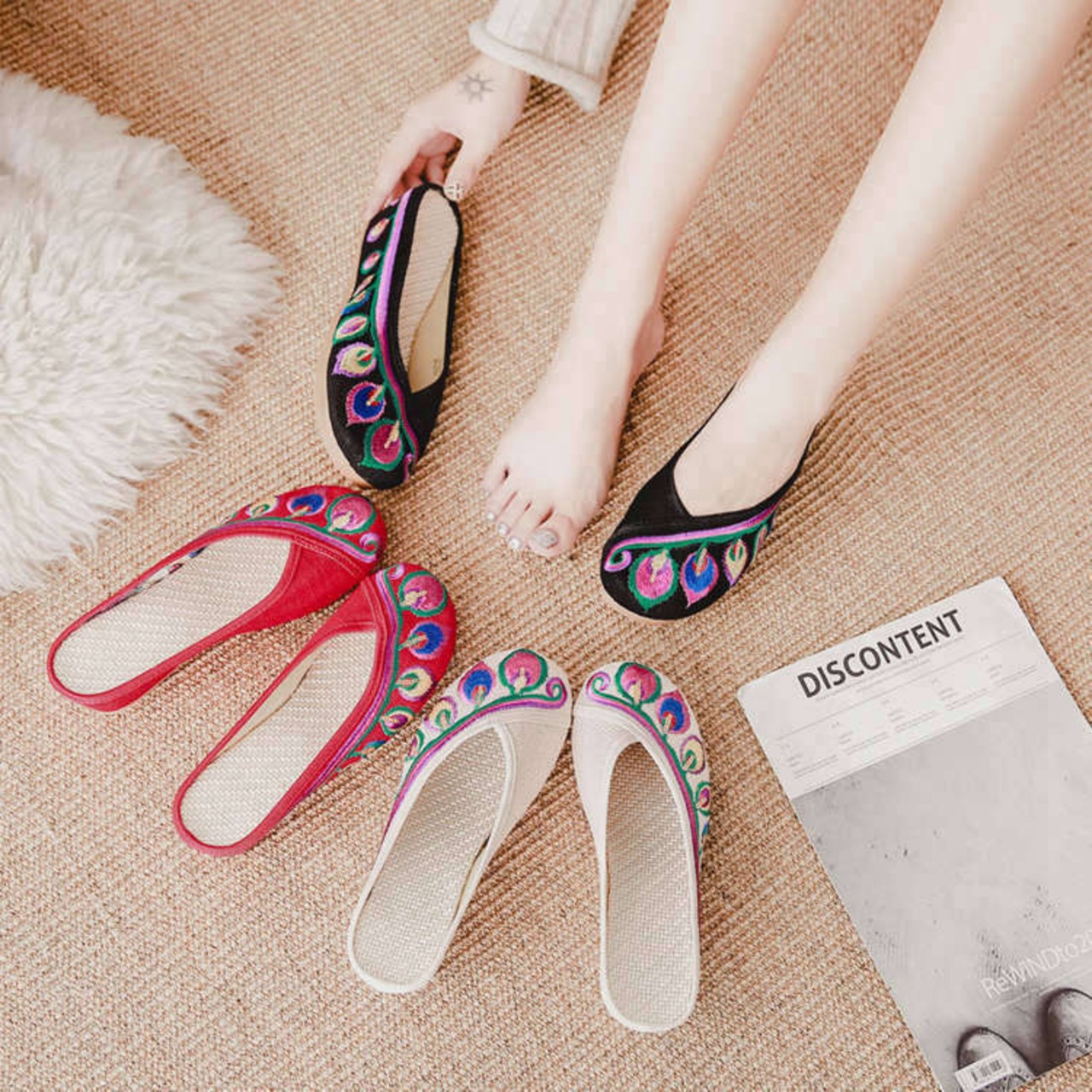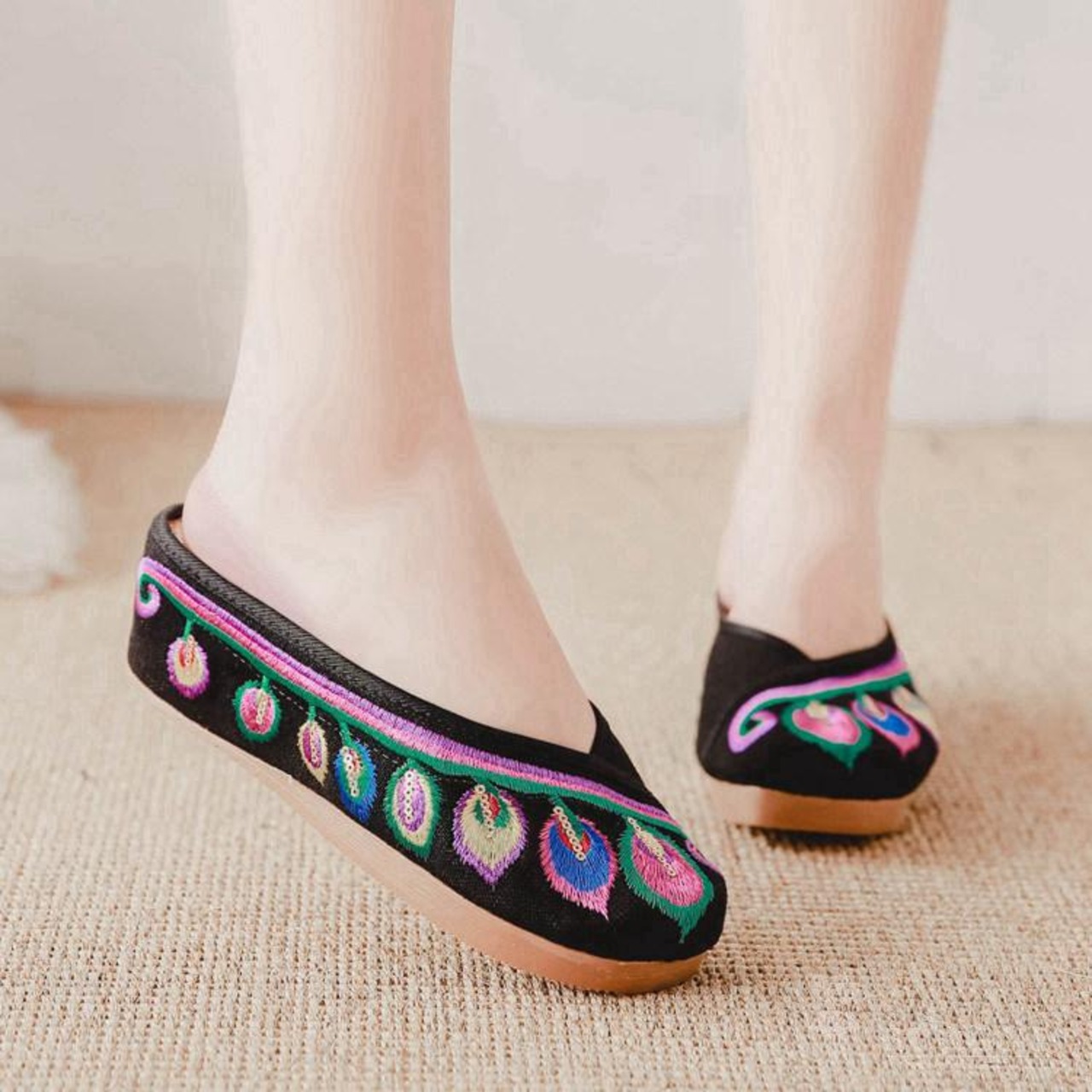 スリッパ レディース チャイナ靴 美脚 ローファー パンプス 刺繍 パンプス パンプス 民族風 パーティー ダンスシューズ 通気性 靴 フォーマル