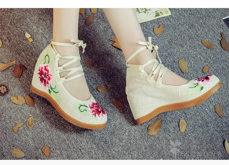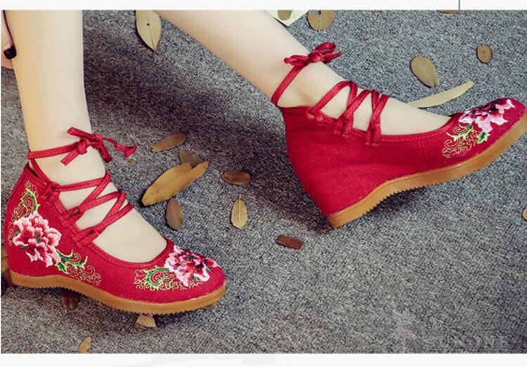 チャイナシューズ レディース チャイナ靴 美脚 厚底シューズ パンプス 花柄刺繍 パンプス パンプス 民族風 パーティー ダンスシューズ 通気性 靴 フォーマル