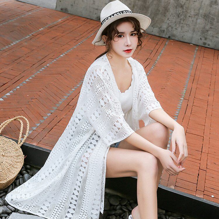 サマーカーディガン レース刺繍 レディース 7分袖 春夏 女性 レディース uvカット uv対策 女性用 イレギュラー裾 ロング丈カーディガン 紫外線対策 冷房対策 マキシ丈 ゆったり