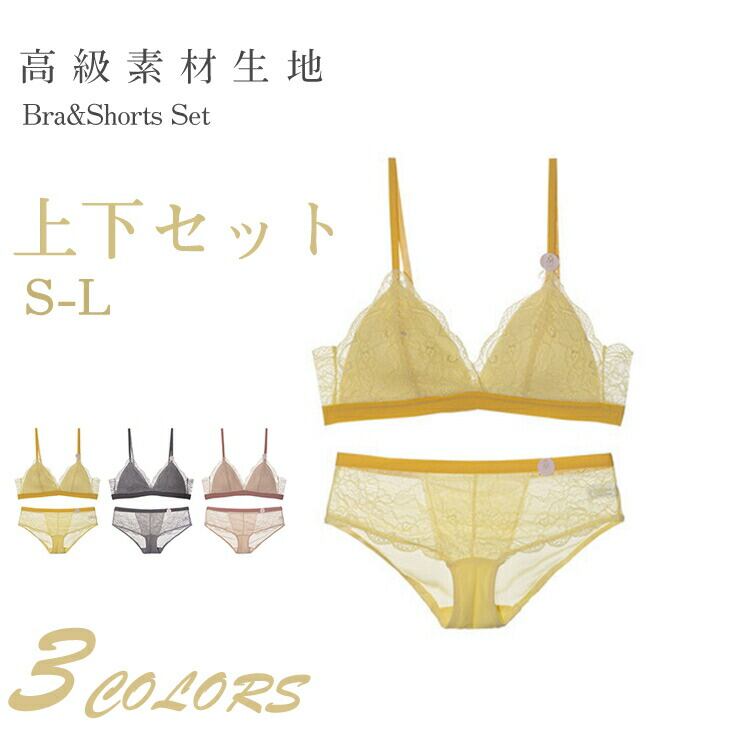 ブラジャー ショーツ セット 可愛い レディース インナー 下着 セット ブラジャー&ショーツ 豊富カラー: ブルー ピンク イエロー サイズ: S M L