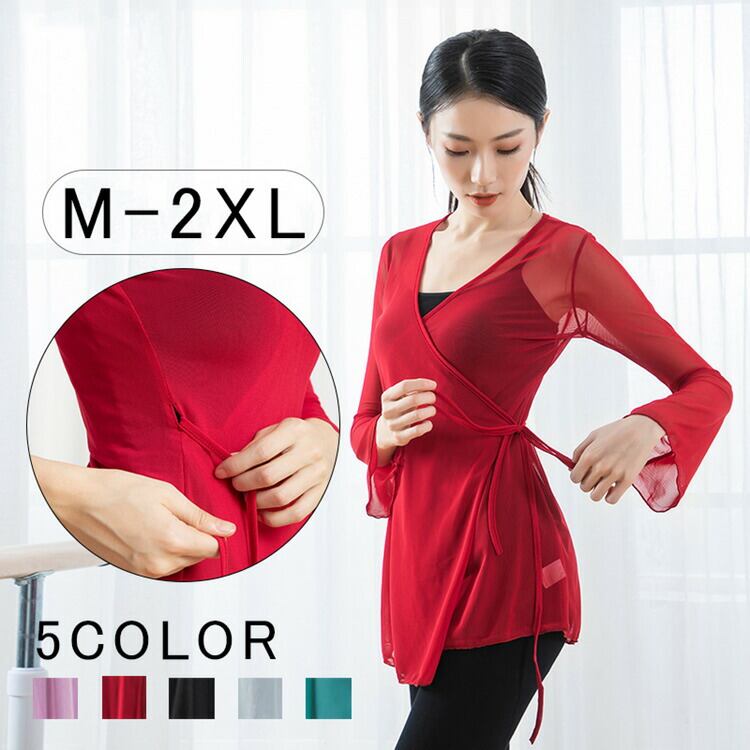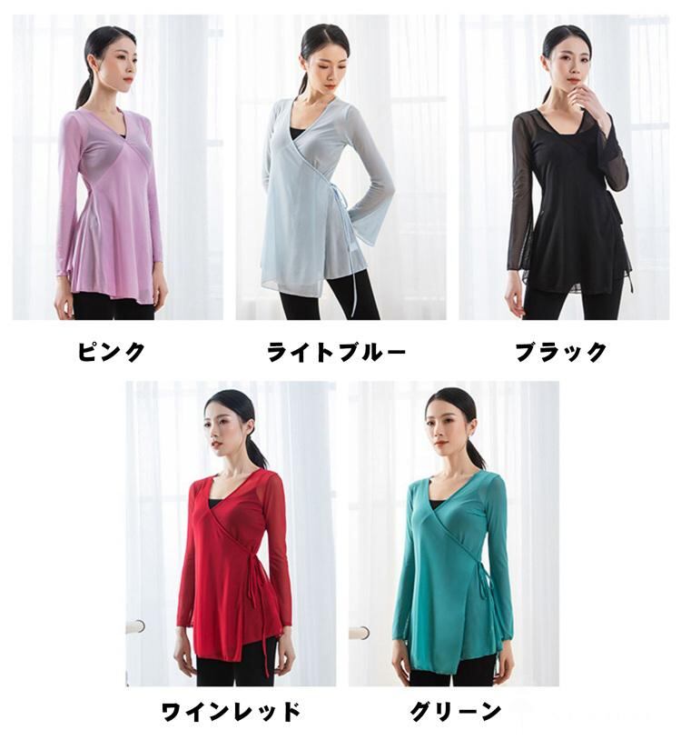 社交ダンス フリル トップス ウエア スポーツ アウトドア 特集カラー: ワインレッド ピンク ブラック ライトブルー グリーン サイズ: M L XL 2XL