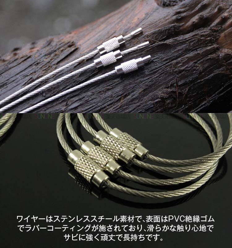 ワイヤーキーホルダー ステンレス製 ワイヤーキーリング ワイヤーリング カードリング ロックワイヤー キーチェーン アクセサリー ネジ式 パーツ 金具 7本セット キーチェーン